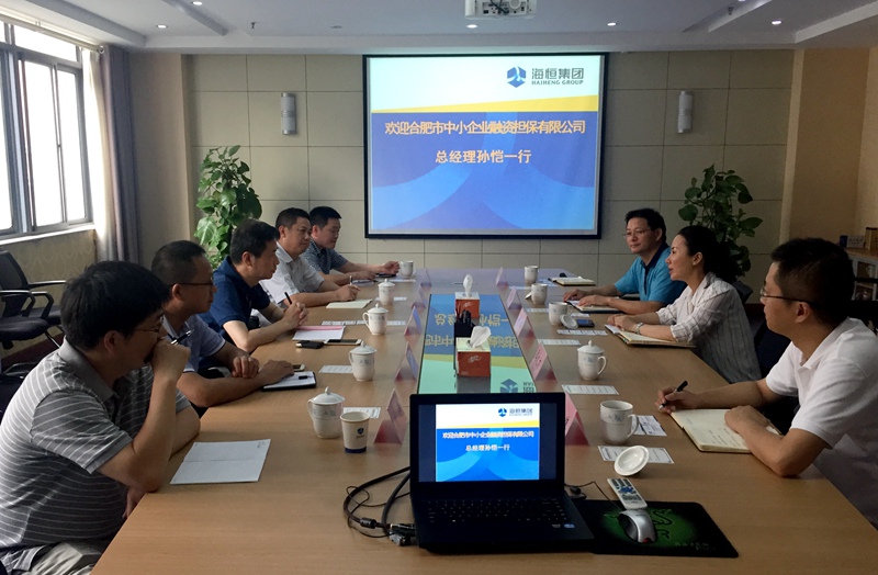 近日,合肥市中小企业融资担保有限公司总经理孙恺一行来访海恒集团,区财政局局长刘岸、海恒集团总经理徐祥忠接待一行。